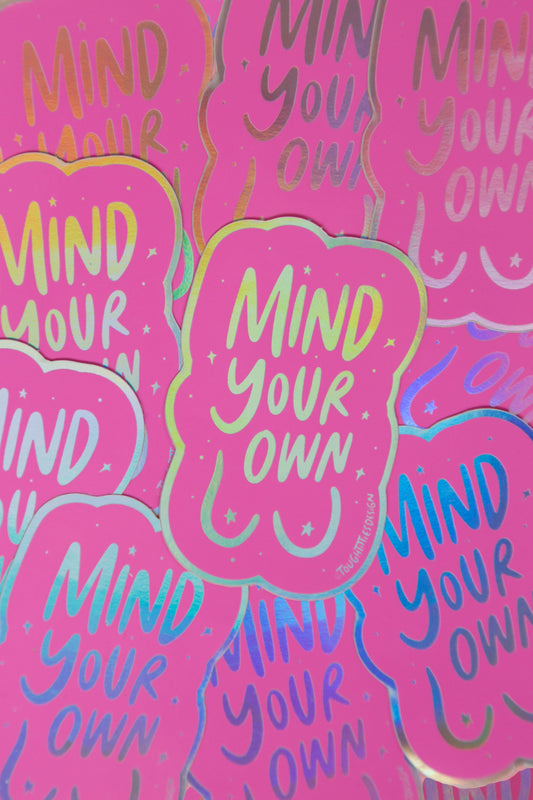 Mind Your Own Tits Neon Pink Holographic Sticker