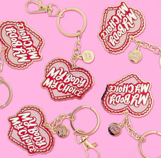 Whether it’s Calm Your Tits, My Body, My Choice, or our classic Tough Titties design (scars and all), each keyring is a pocket-sized reminder to own your power — and your keys.
